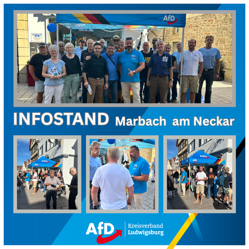 Am vergangenen Samstag waren wir mit unserem Infostand in der schönen Altstadt von Marbach am Neckar unterwegs. Wie schon in den letzten Monaten konnten wir beobachten, dass das Interesse und die Gespräche mit den Bürgerinnen und Bürgern immer mehr zunehmen. Besonders gefreut hat uns, dass auc...
