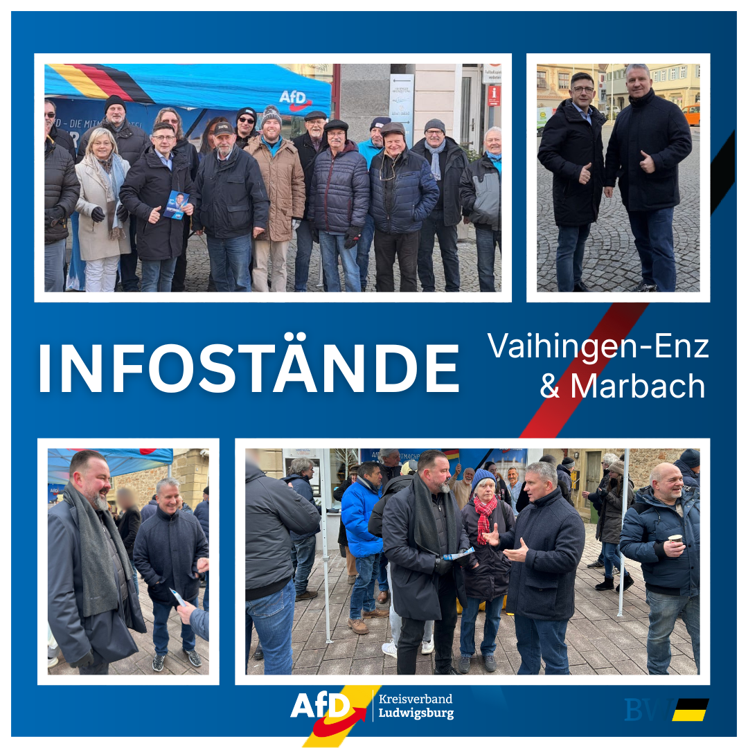 Ein weiteres wichtiges Etappenziel wurde erreicht! Am Samstag, den 24. Januar 2026, stellten sich unsere Direktkandidaten Nikolaos Boutakoglou und Reno Geisler wieder den Bürgerinnen und Bürgern in Vaihingen-Enz und Marbach. Bei strahlendem Wetter und guter Laune führten sie spannende und tiefgehende Gespräche – und das mit großem Erfolg!
